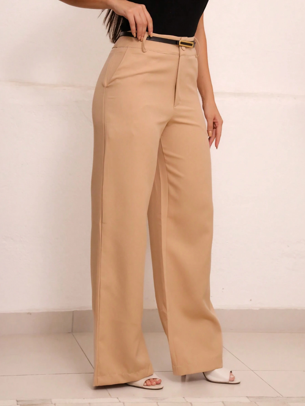 Kit 2 Pantalona Calça Alfaiataria Feminino Moda Inverno Linha Luxo Elegância Com Cinto e Bolso Cintura Alta Social