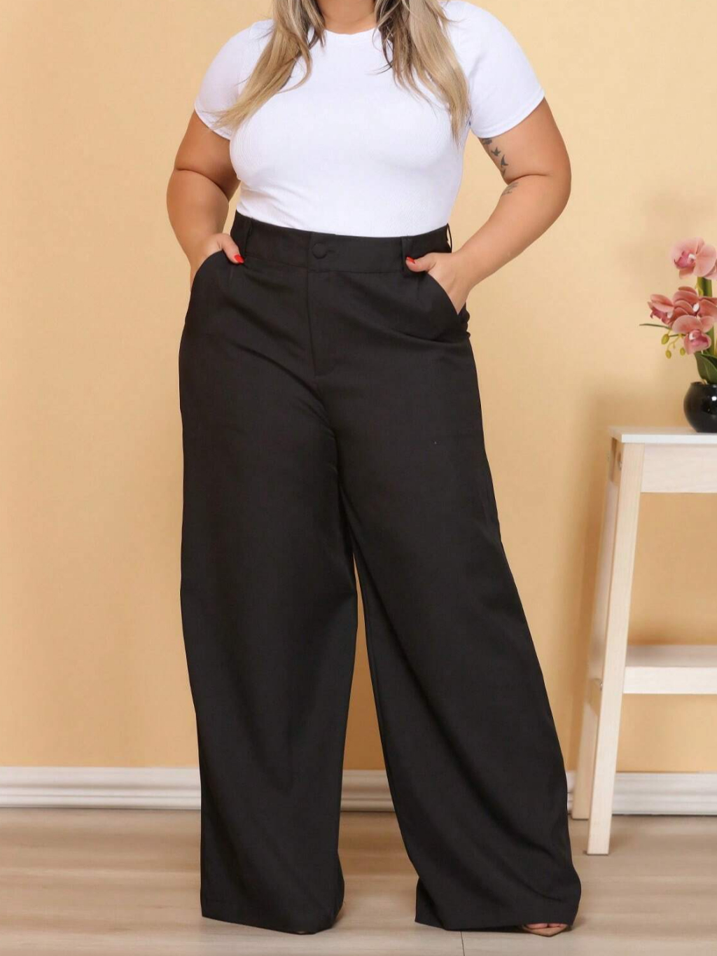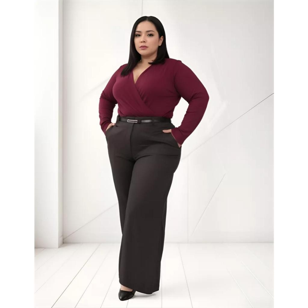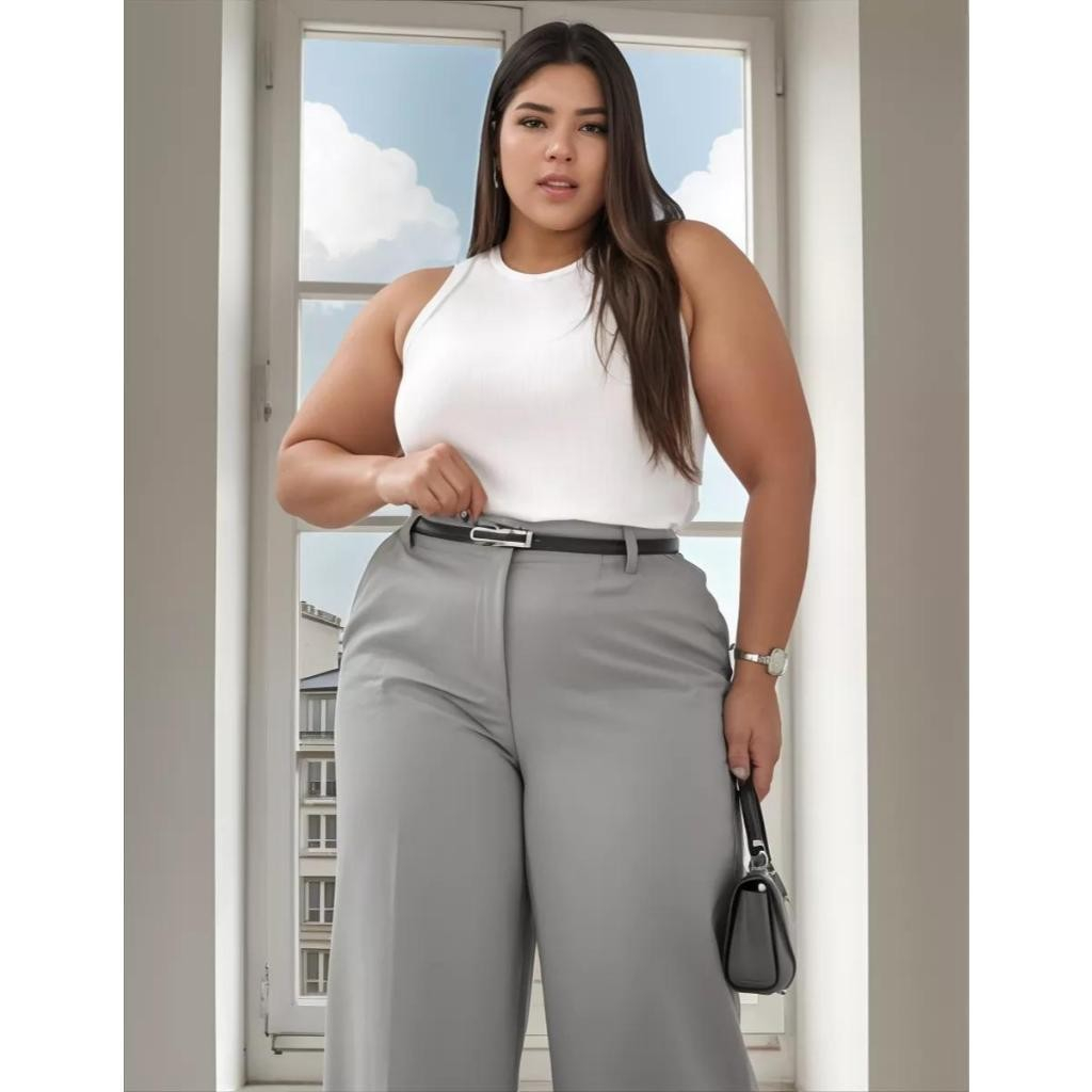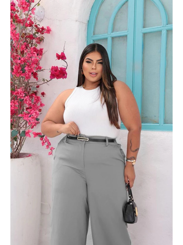 Calça Pantalona PLUS SIZE Alfaiataria Feminina com Cinto Zara Elegancia Social