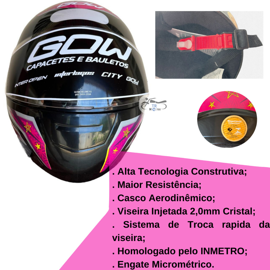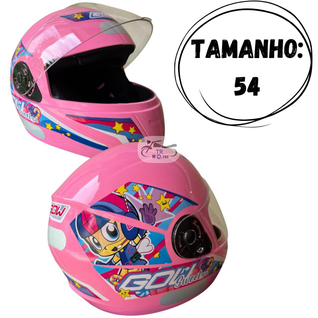 Capacete Infantil Gow Kids Tamanho 54 Cores Rosa/Vermelho/Verde/Preto Com Rosa