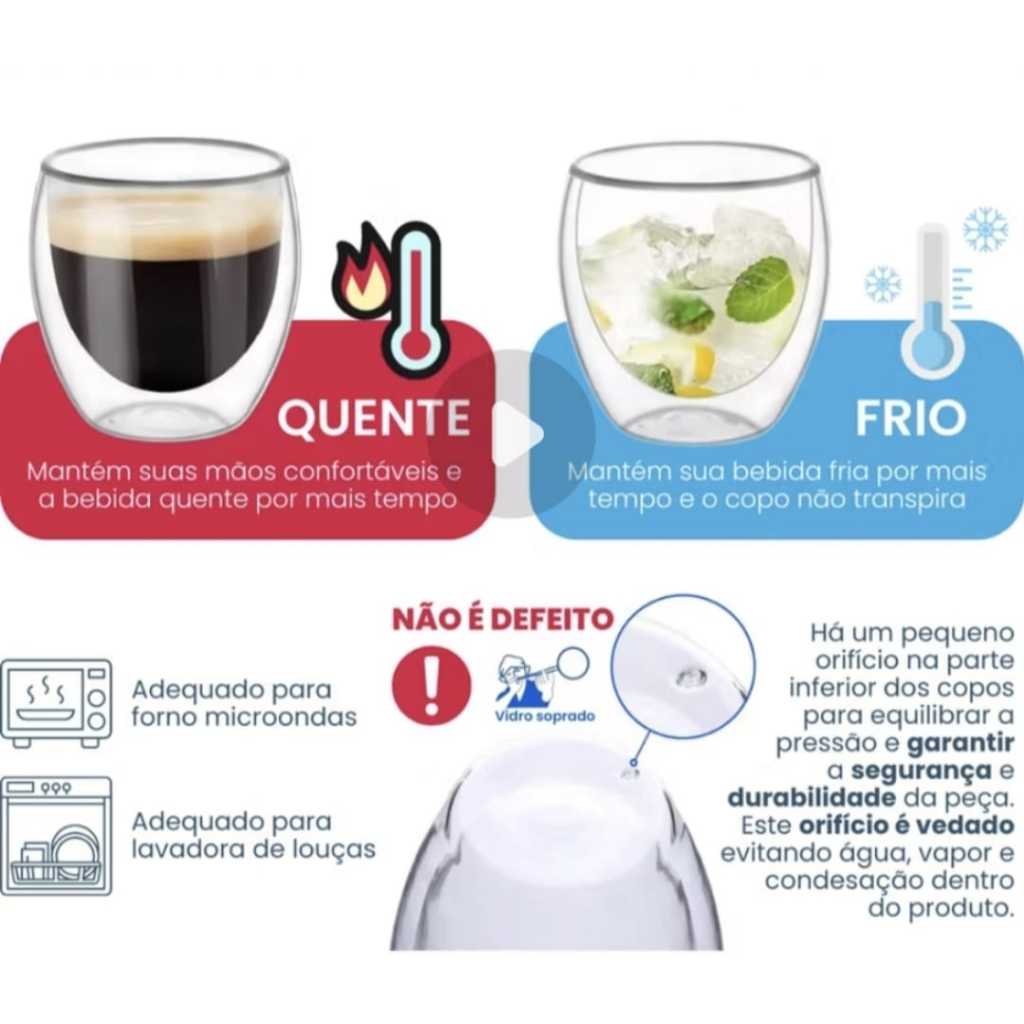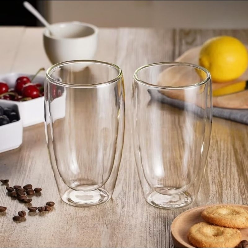 Kit com 2, 4 ou 6 Copos De Vidro Borasilicato Dupla Camada 470ml Transparente