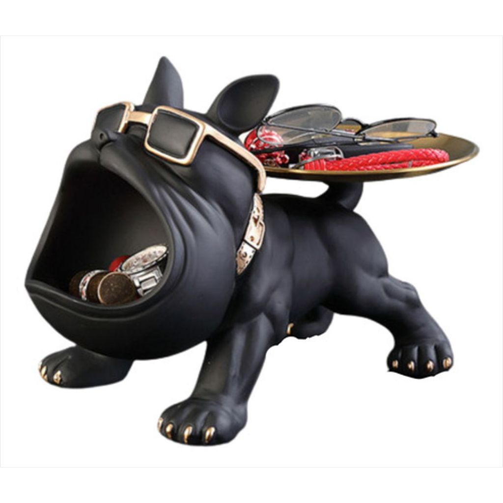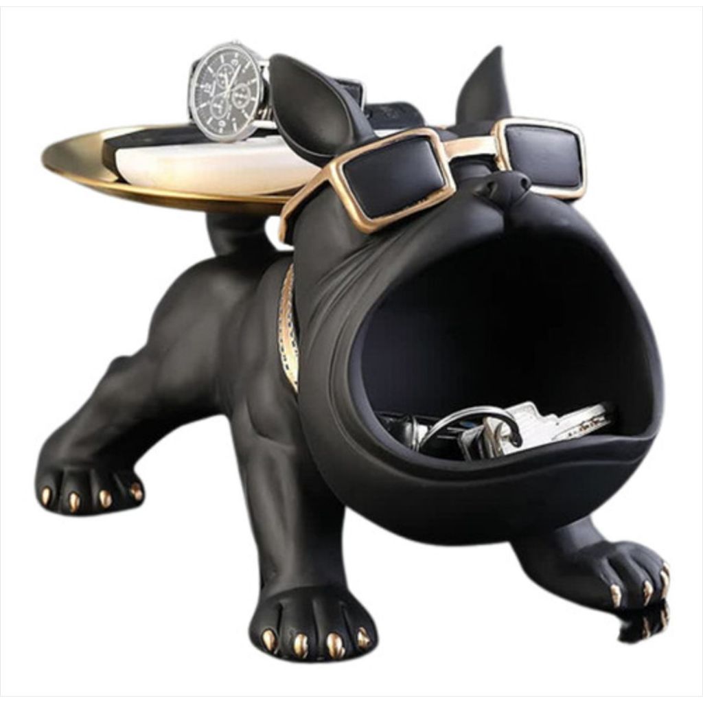Decoração Escultura Buldog Óculos Bandeja Porta Treco Decorativo