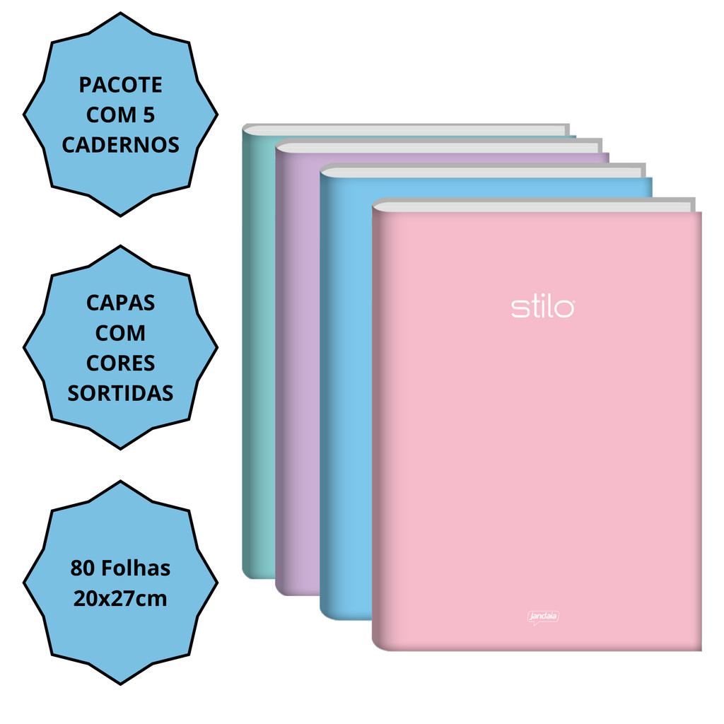 Kit 5 Cadernos Brochurão Universitário 80 Folhas Stilo Capa Dura tons Pasteis Jandaia Capas Sortidas