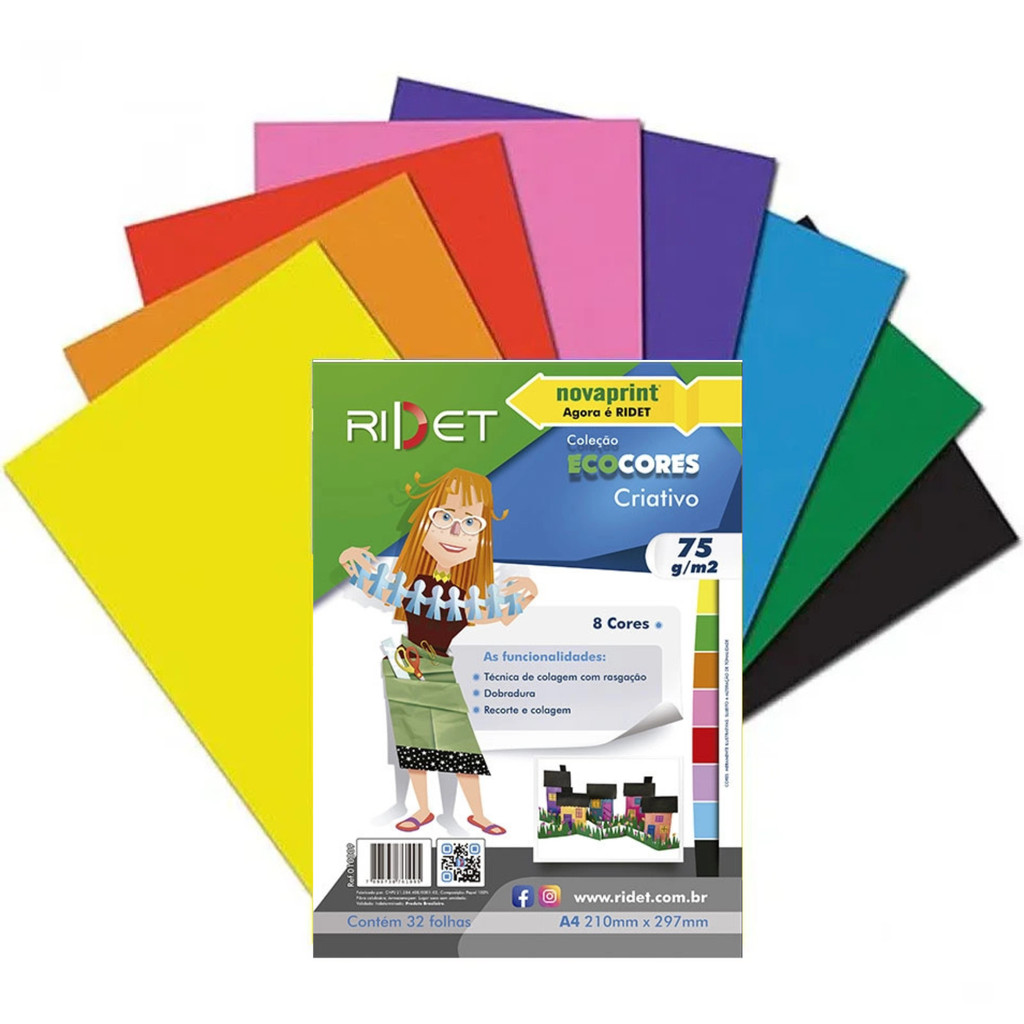 Bloco Ridet Criativo 8 Cores A4 75g - Pacote com 32 Folhas