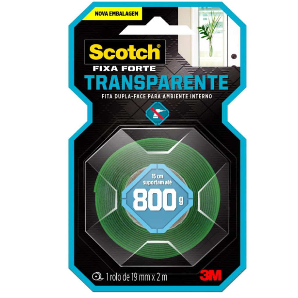 Fita Dupla Face Scotch Fixa Forte Transparente 19mmx2m - 01 Unidade