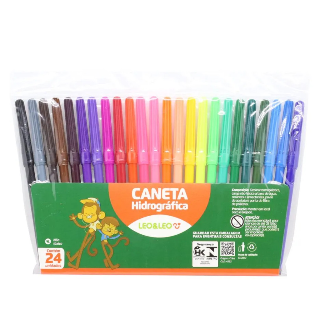 Hidrográfica 24 Cores Leo&Leo Colorida, Lavável e Ideal para Desenhos Criativos