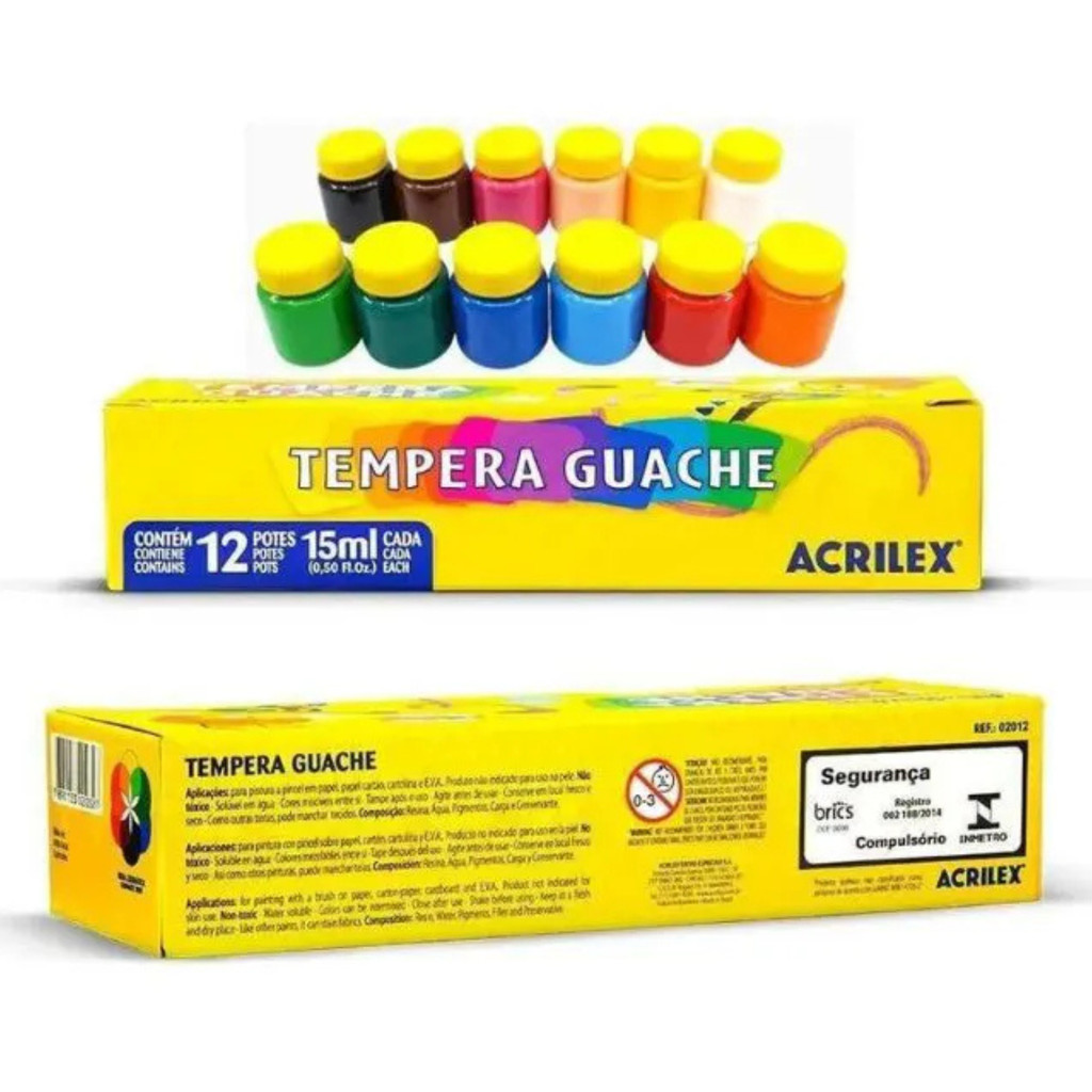TINTA GUACHE 15ML 12 CORES ACRILEX