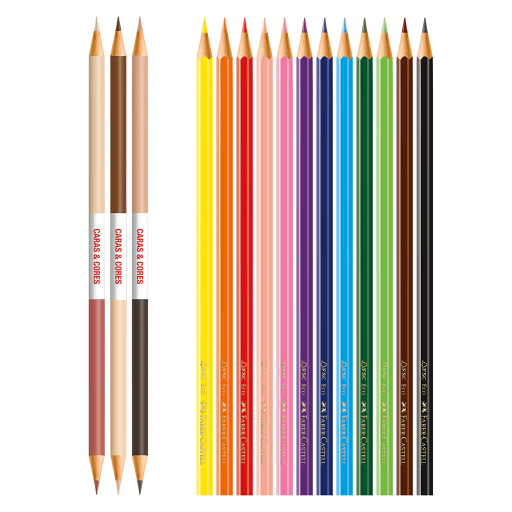 Lápis De Cor 12 Cores + 3 Caras&Cores Faber Castell - 1 Estojo Com 15 Lápis
