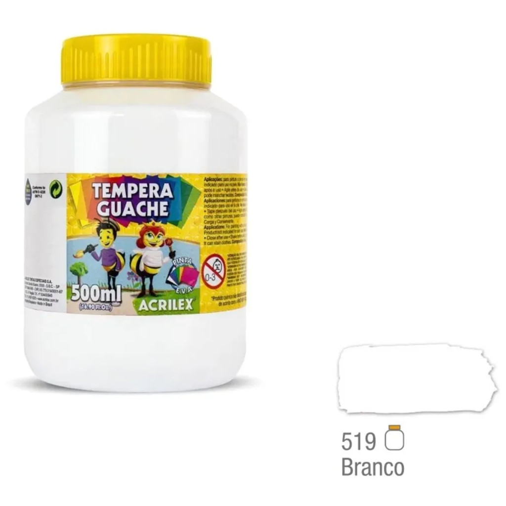 TINTA GUACHE BRANCA 519 ACRILEX - 1 POTE COM 500ML