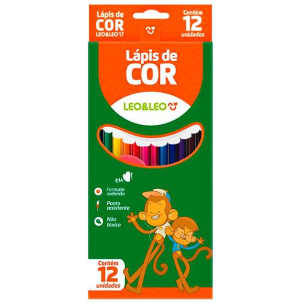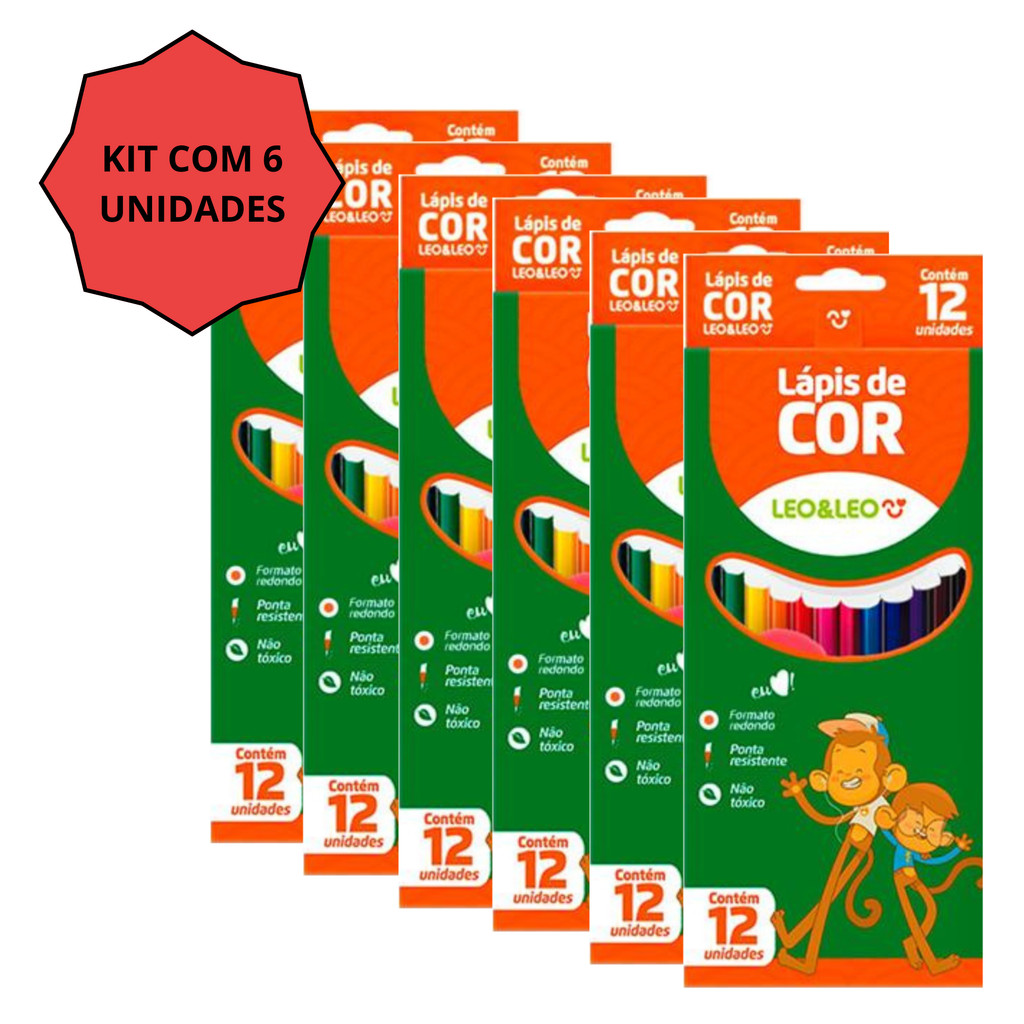 Kit 6 Unidades Lápis De Cor Redondo Leo&leo 12 Cores Rodondo Com Ponta Resistente