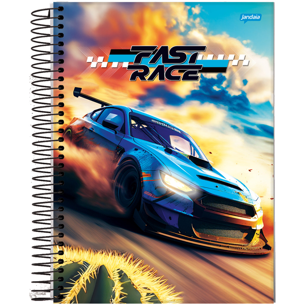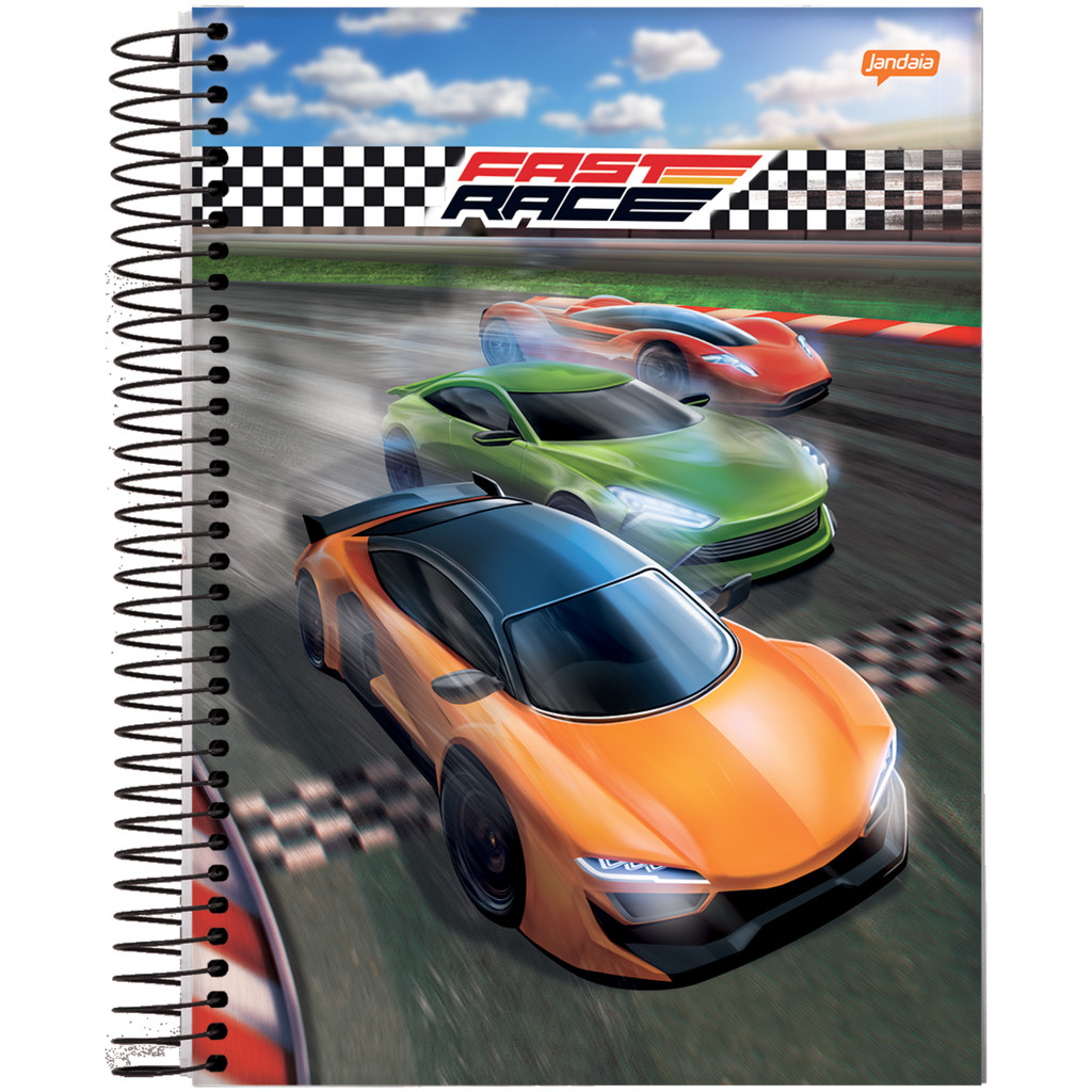 Kit 4 Cadernos Universitário 160 Folhas 10 Matérias 20X27cm Fast Race Carros Jandaia Capas Sortidas