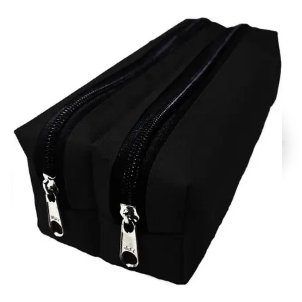 Estojo Escolar Duplo 8x20cm Preto Básico Monocromático 2 Compartimentos Resistente Maxcril