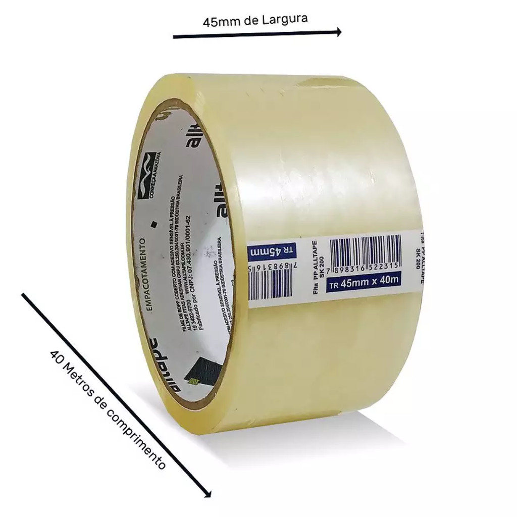 Fita Adesiva PP 45mm x 40m Transparente Forte e Ideal para Embalagens