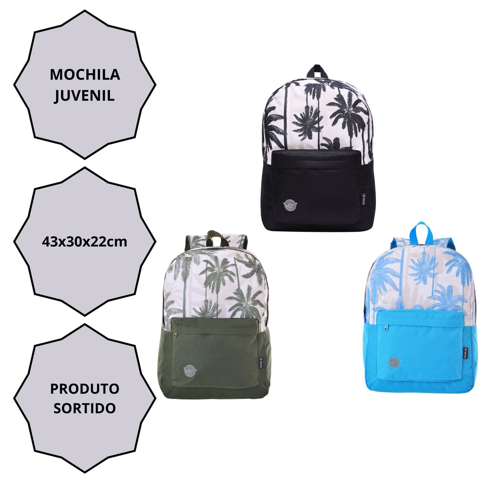 Mochila Juvenil Basic Unissex Coqueiros Praia Winth - 1 Unidade Sortida