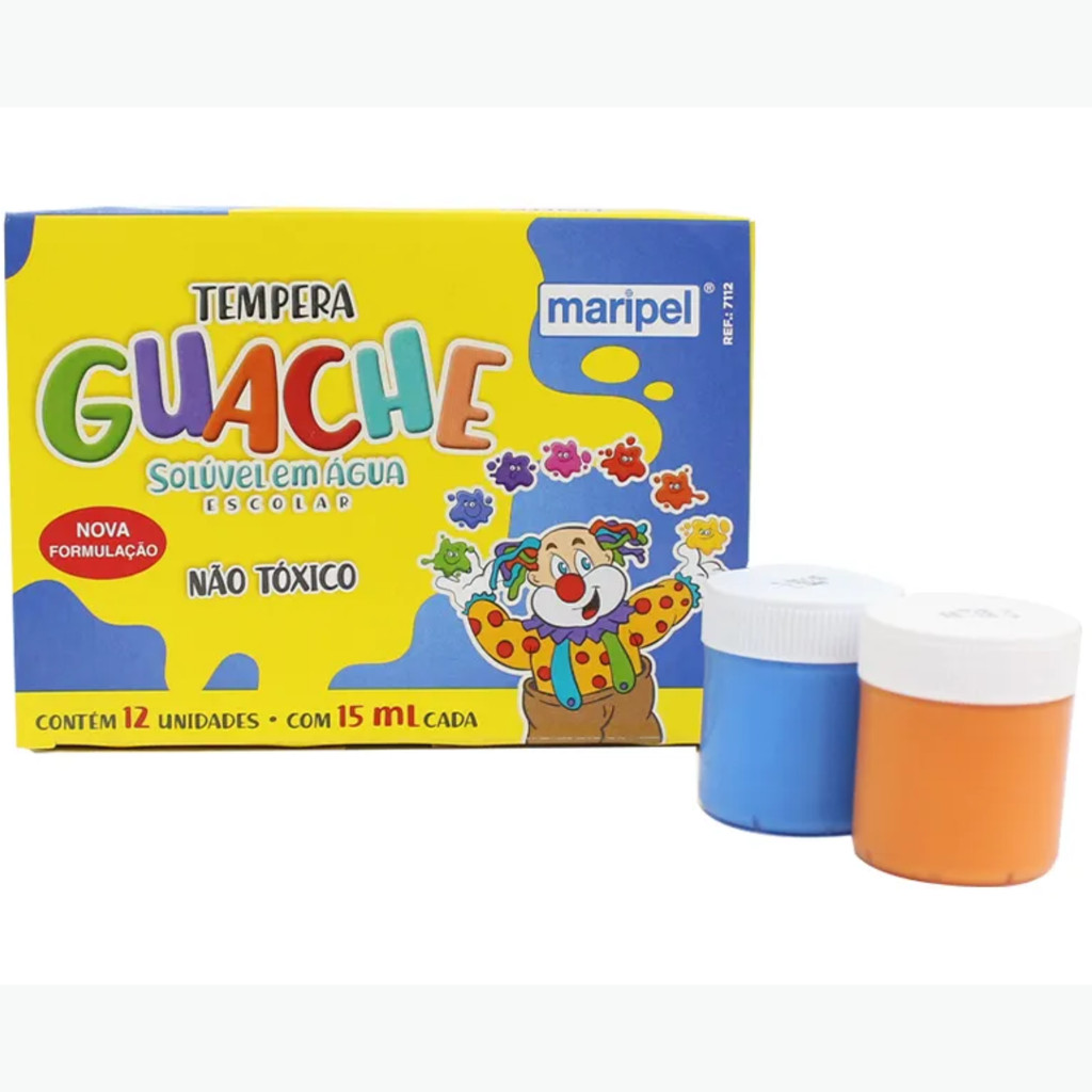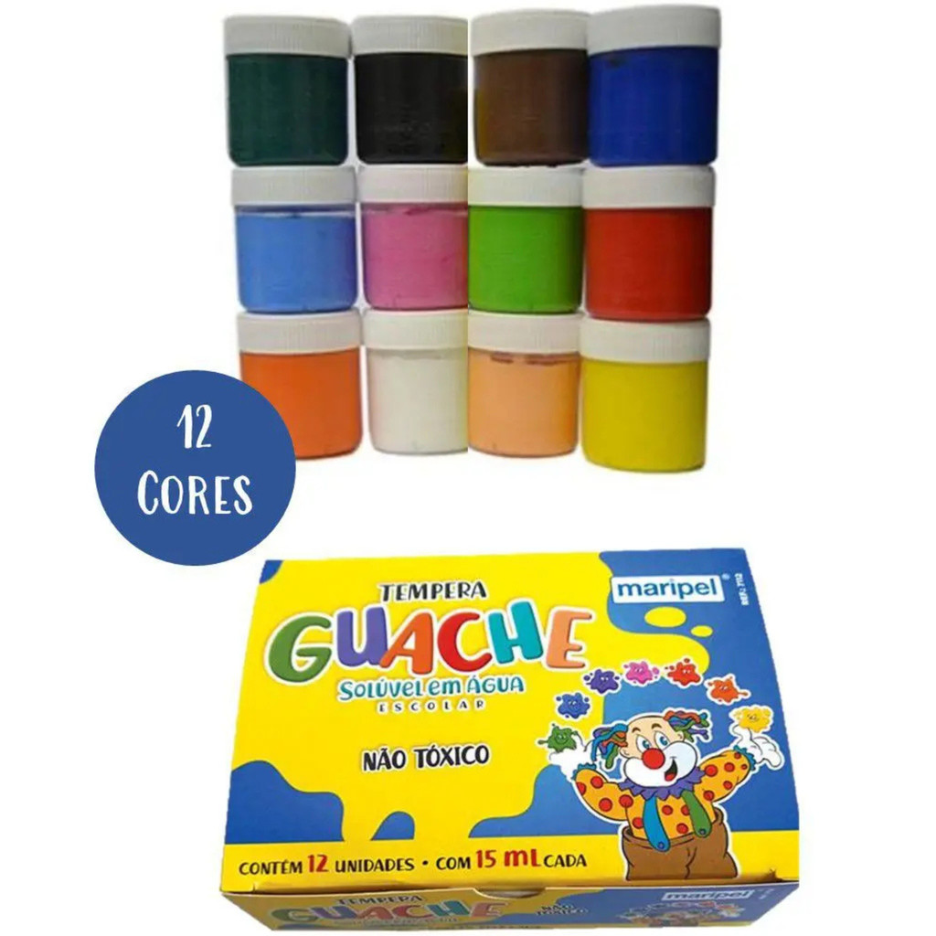 Tinta Guache Escolar 12 Cores Maripel 15ml - 1 Caixinha