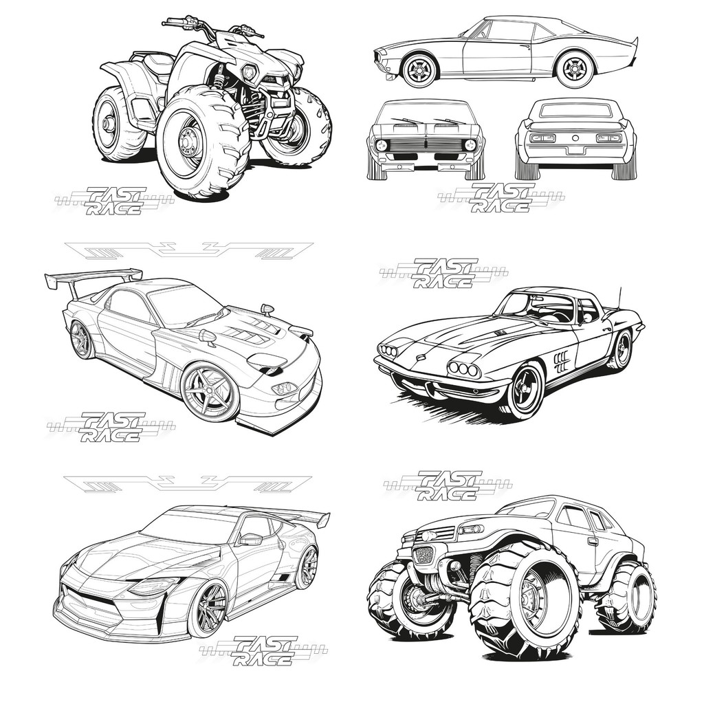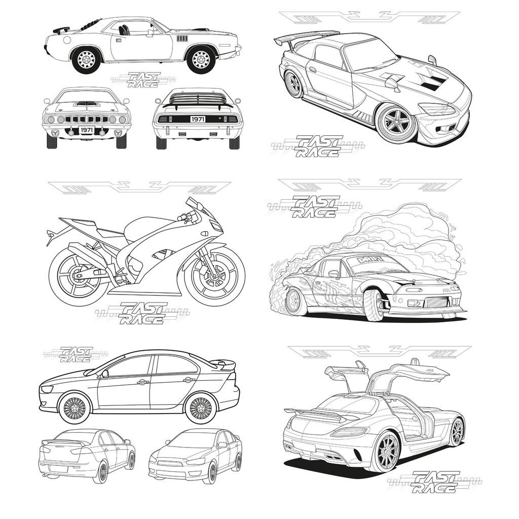 Livro para Colorir Formato A4 180g com 28 Folhas Fast Race, Divertido e Educativo