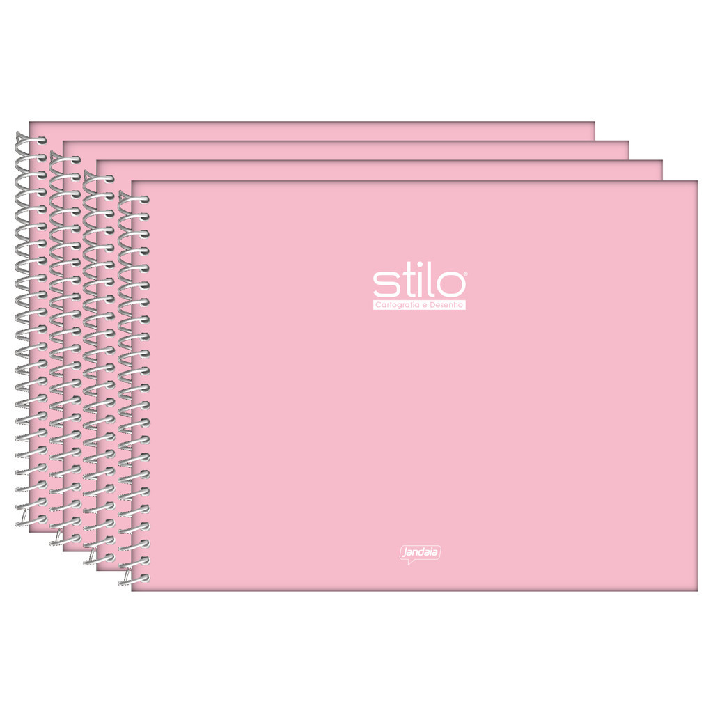 Caderno de Cartografia e Desenho Espiral Capa Dura 80 Folhas Rosa Stilo Jandaia - Pacote Com 4 Unidades