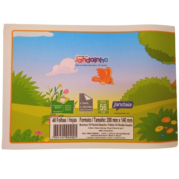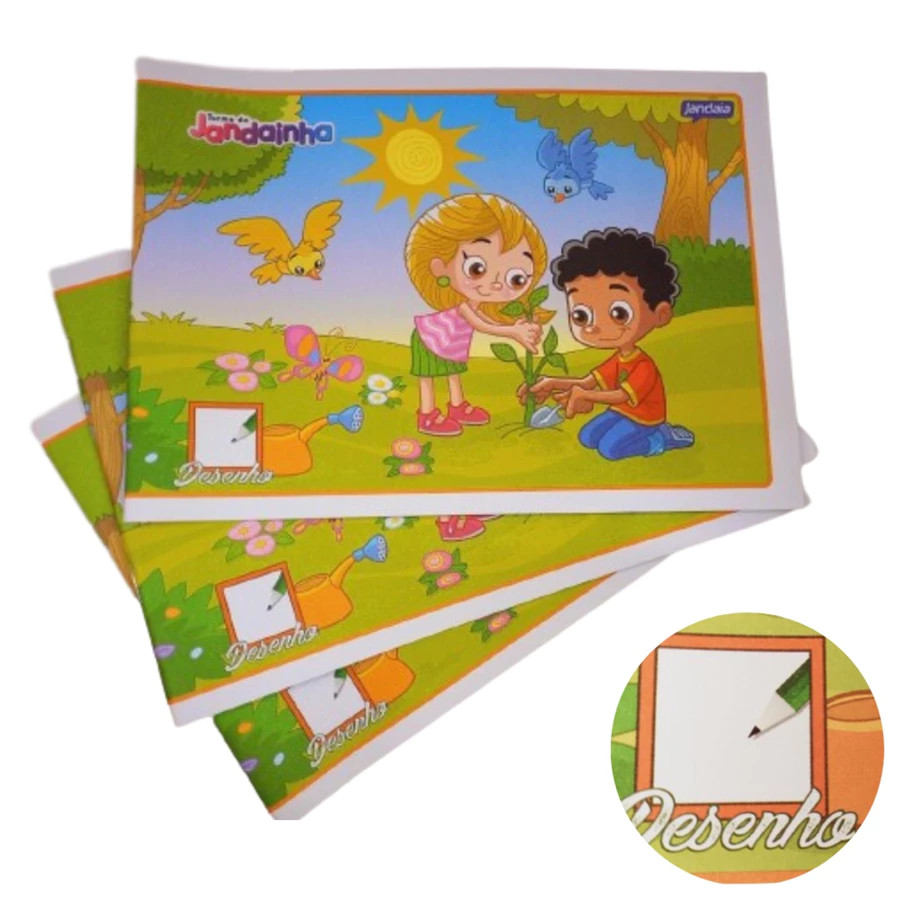 Caderno Desenho Brochura 1/4 40Folhas Flexível Jandainha - Pacote com 20