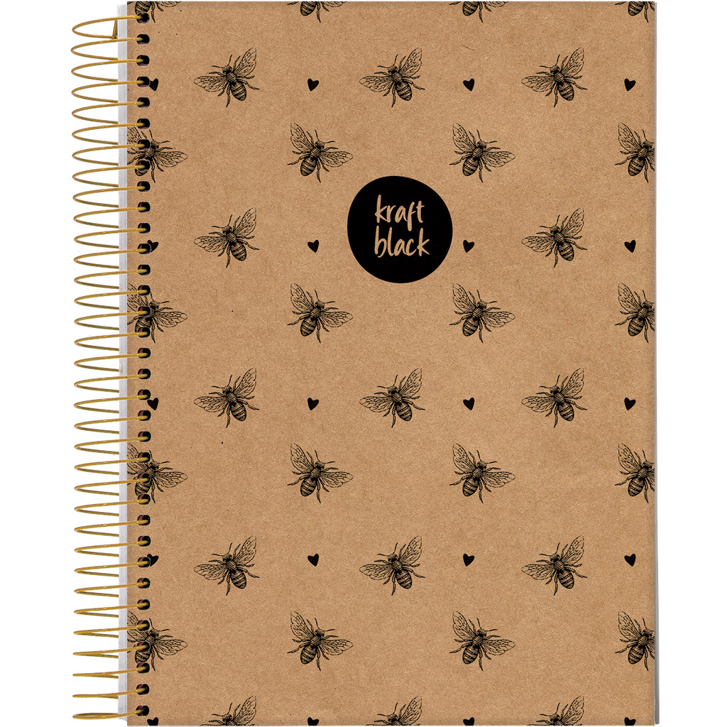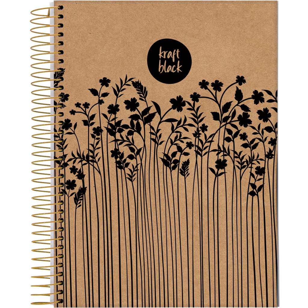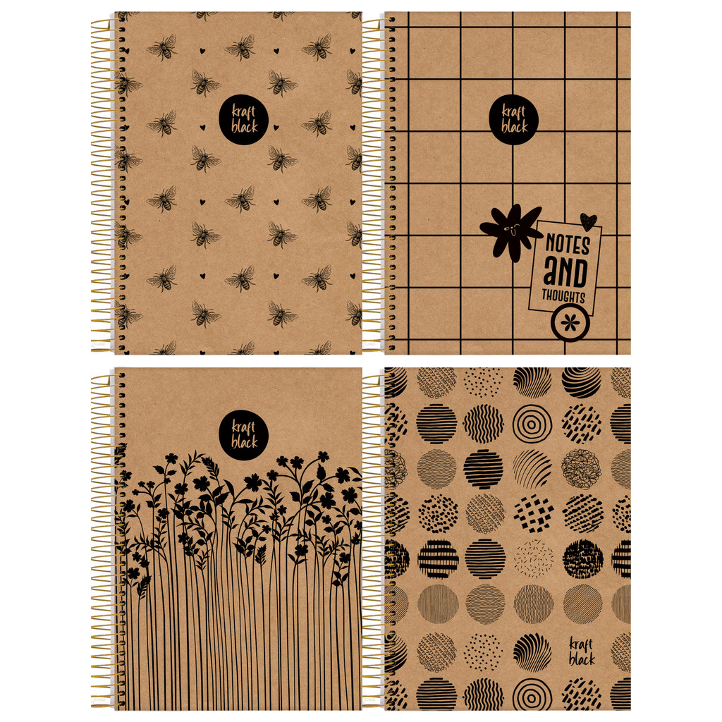 Caderno Universitário Capa Dura 1 Matéria 80 Folhas Kraft Black Jandaia - Pacote 4 Unidades Sortidas