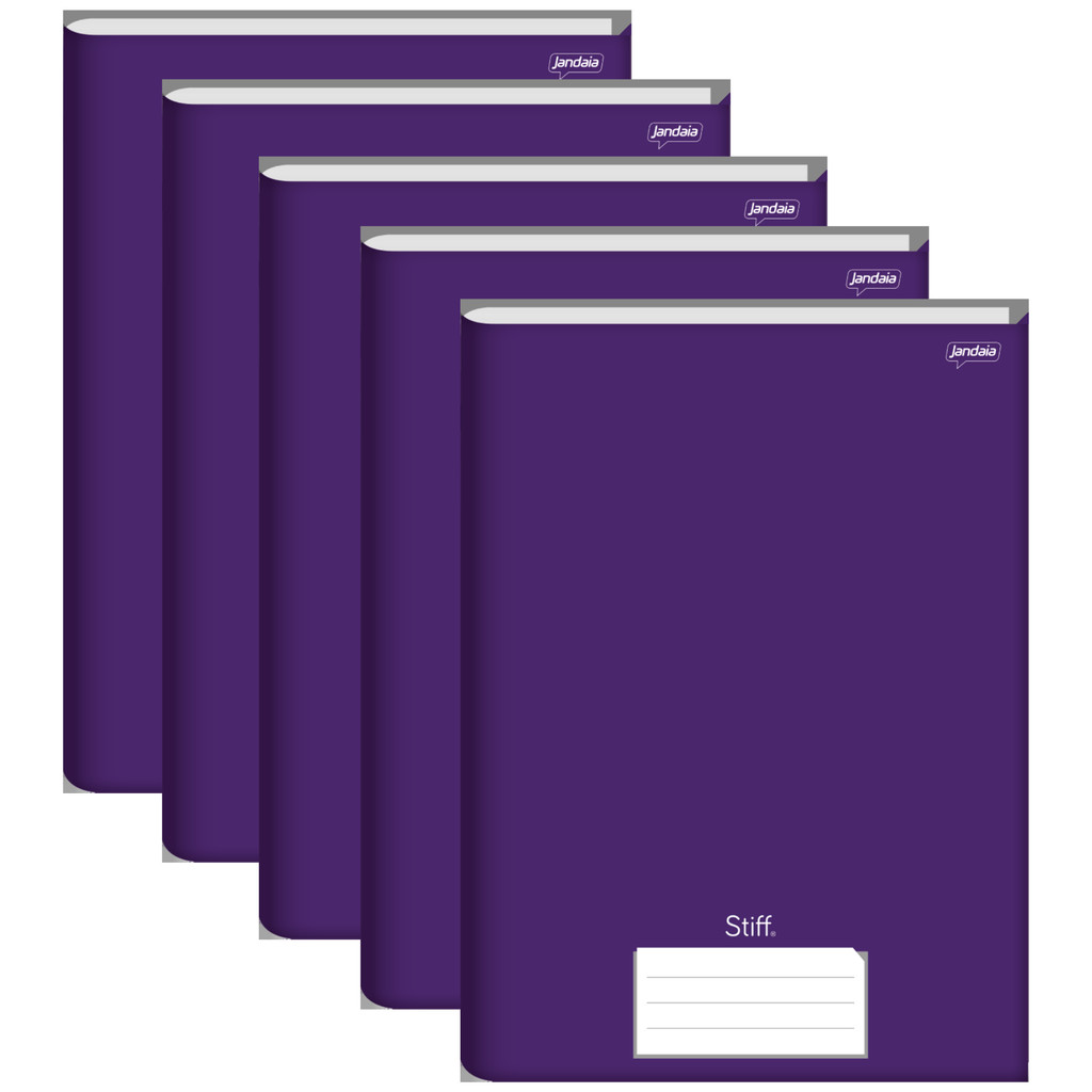Caderno Brochura Universitário 96 Folhas Jandaia Stiff – Capa Dura Roxo | Papel 56g | Kit com 5 Unidades Sortidas