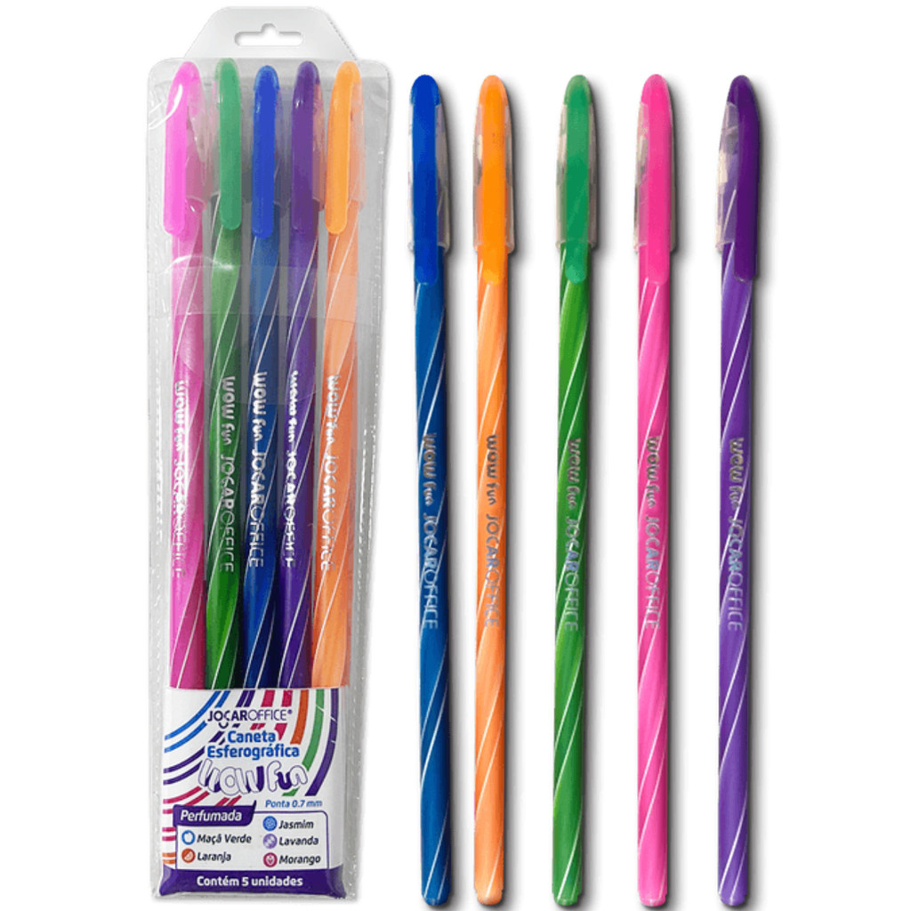 Kit 5 Canetas Coloridas Esferográficas Com Cheirinho Wow Fun Ponta 0.7M Jocar Office