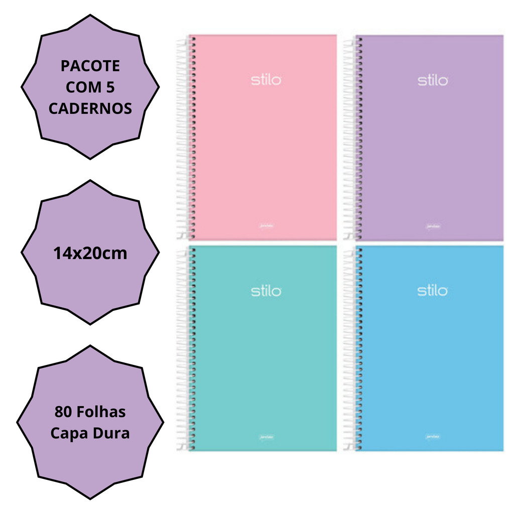 Kit 5 Cadernos 1/4 Capa Dura 14x20cm 80 Folhas Stilo Jandaia Capas Sortidas