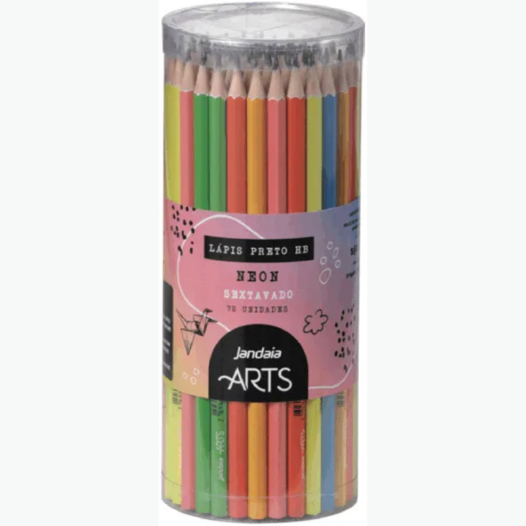Lápis HB Preto Neon em Resina Jandaia Arts - Pote com 72 unidades