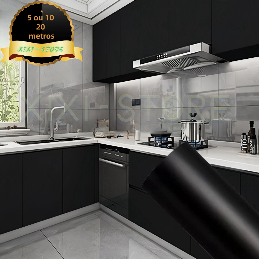 Papel Adesivo Preto 5 / 10 ou 20 METROS X 45CM Adesivo Para Parede Moveis Geladeiras Eletrodoméstico