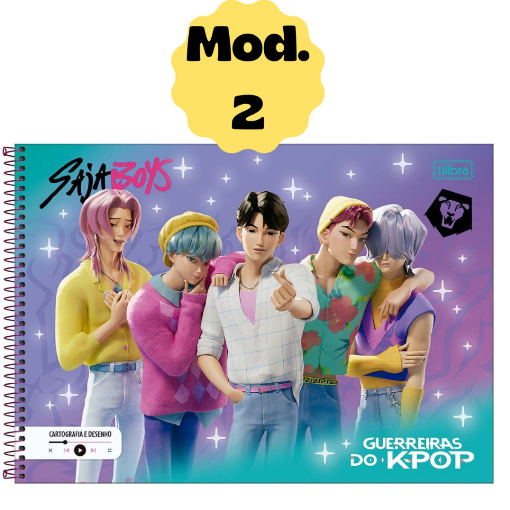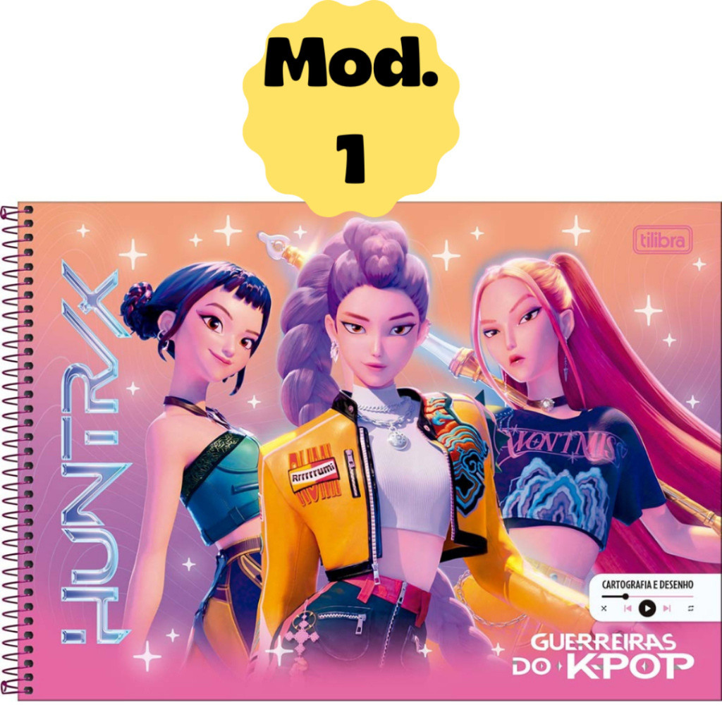 Kit 2 Caderno De Desenho Guerreiras Do K-Pop Tilibra Grande Cartografia Cart Huntrix Saja Boys Rosa