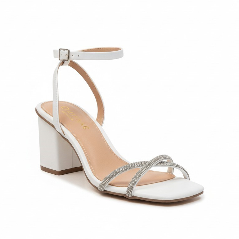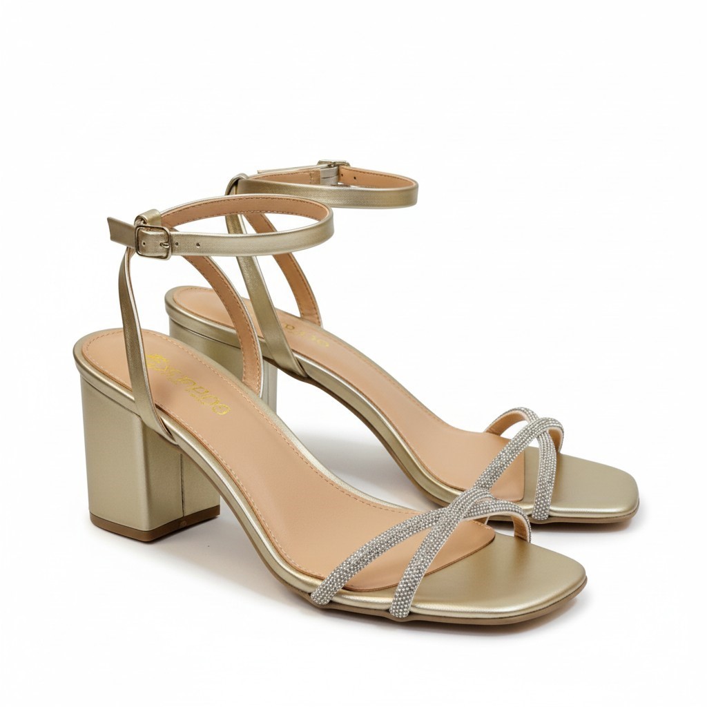 Sandália Feminina Tiras Strass Salto Baixo Grosso Confortável Tamanco Elegante