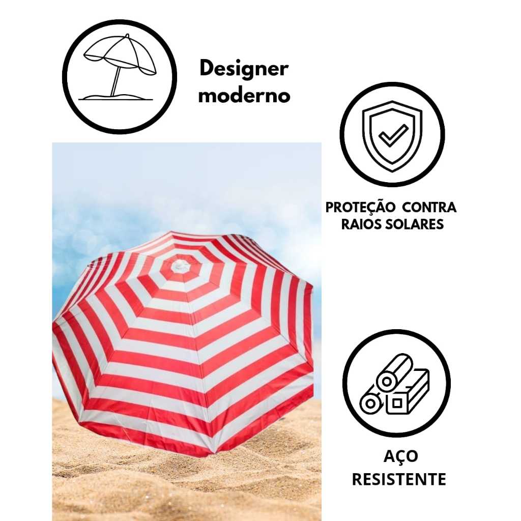 Guarda-Sol Gigante 1,80m Praia Piscina Proteção UV Verão Reforçado