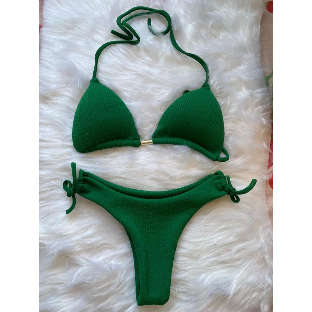 Biquini Cortininha Canelado Calcinha de Biquini Fio Duplo Semi Fio Dental