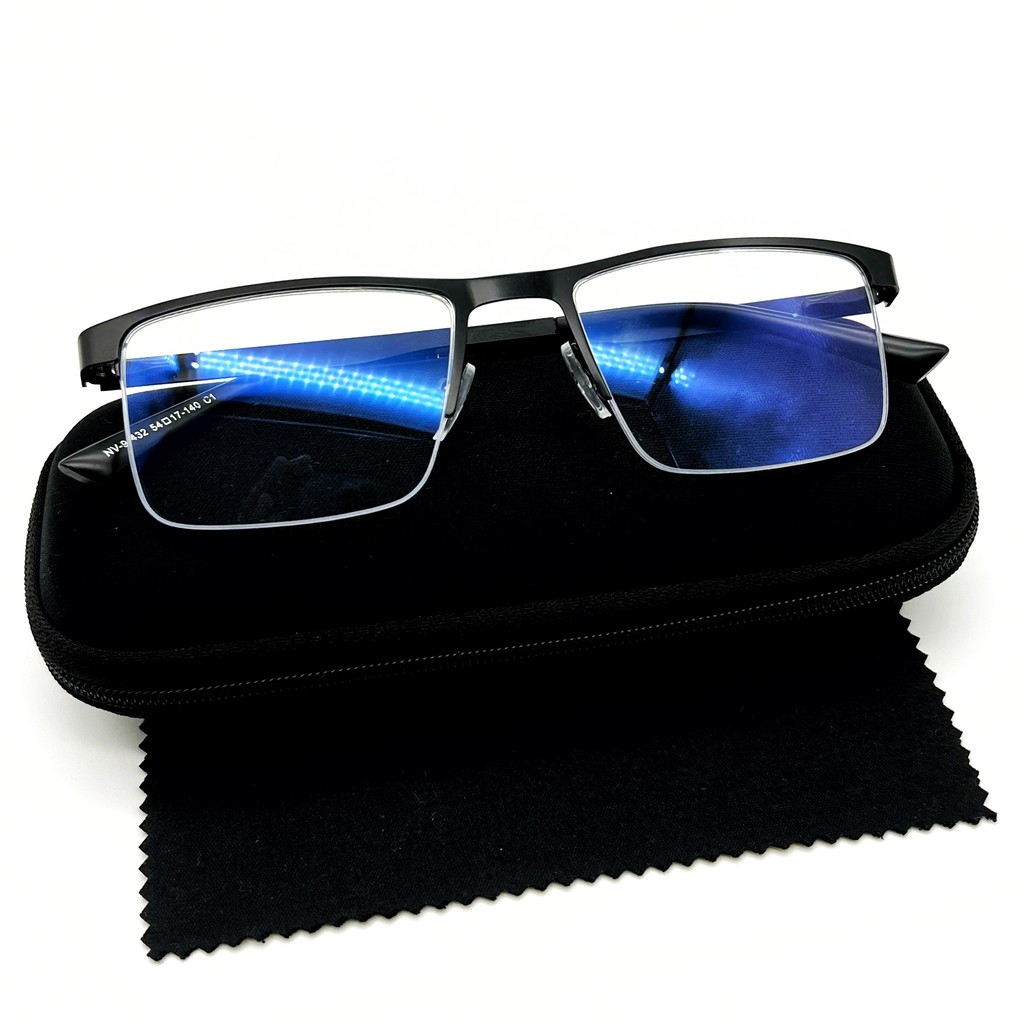Armação Óculos Sem Grau Aço Fio Nylon Lentes Bloqueador Luz Azul Metal Masculina