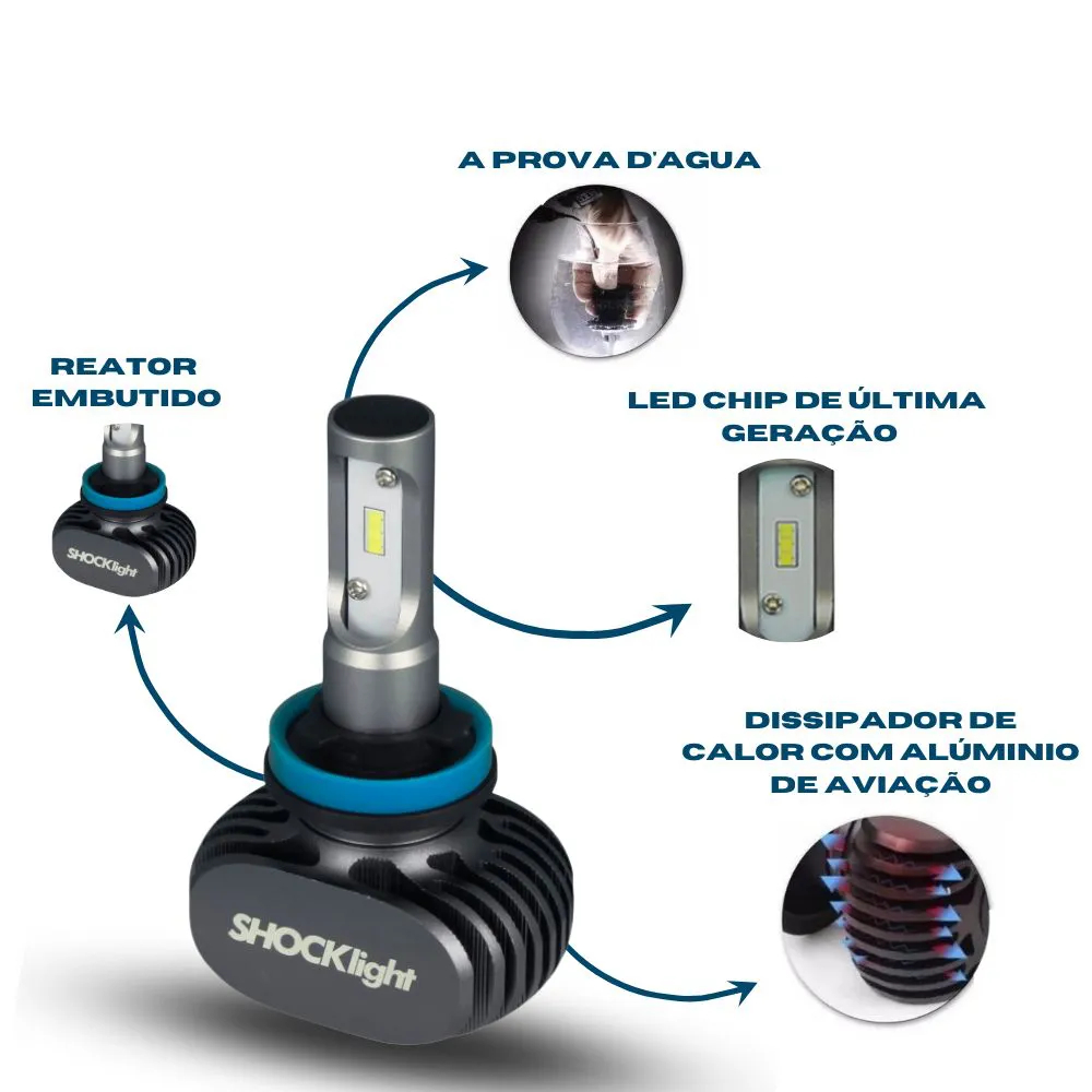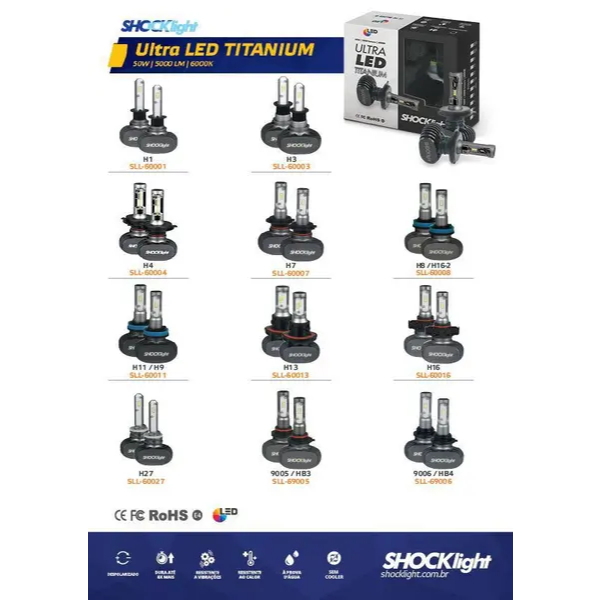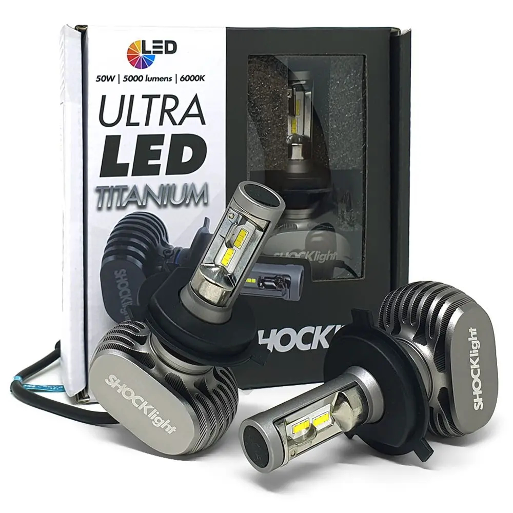 Kit Lampada Ultra Led Titanium Shocklight 10000 Lumens 6000K H7 H4 H11 hb4 h3 h1 h27 canbus 50watts