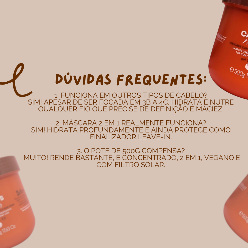 Máscara Cachos 2 em 1 Arvensis Hidratação Para Cabelos Crespos e Crespissímos Vegano Liberado