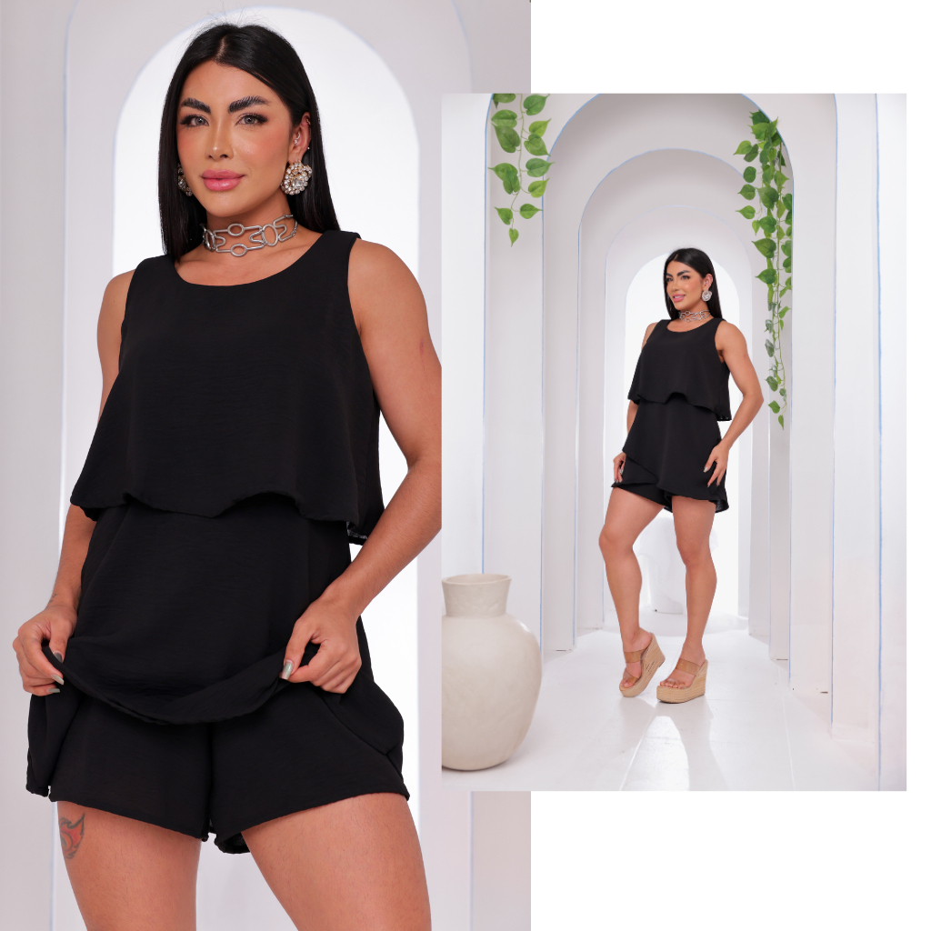 Macaquinho Feminino Vestido Soltinho Crepe Duna Tendência Camadas