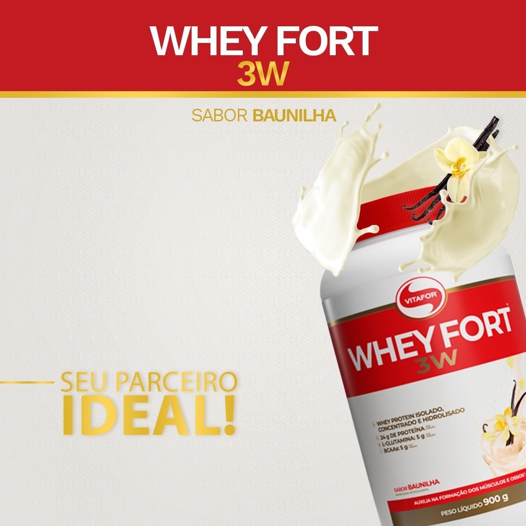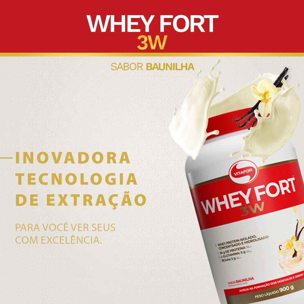 Whey Fort 3W 900g Vitafor - Sabor Baunilha
