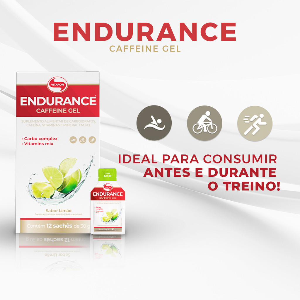 Endurance Caffeine Gel Vitafor Sabor Limão 12 Sachês