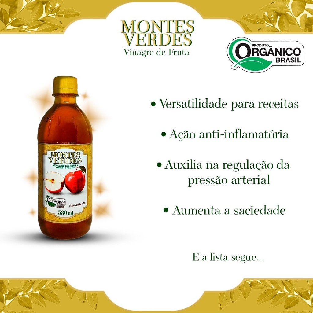 Kit 3 Vinagre de Maçã Orgânico 530ml - Montes Verdes