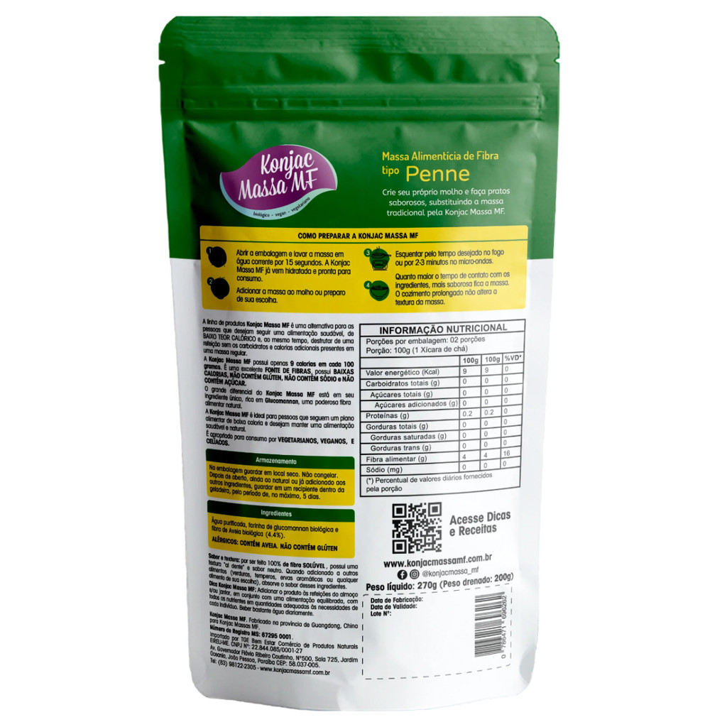 Massa de Macarrão - Massa Fresca Tipo Penne 270g - KONJAC
