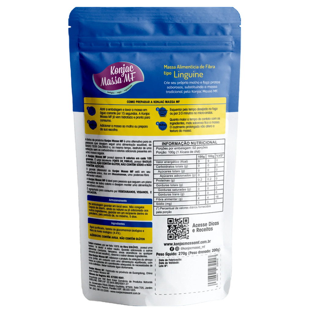 Massa de Macarrão - Massa Fresca Tipo Linguine 270g - Konjac