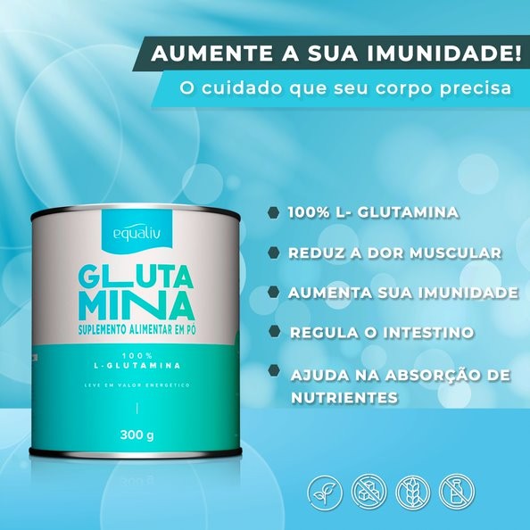 Glutamina em Pote de 300 g Sem Sabor da Equaliv