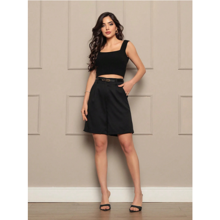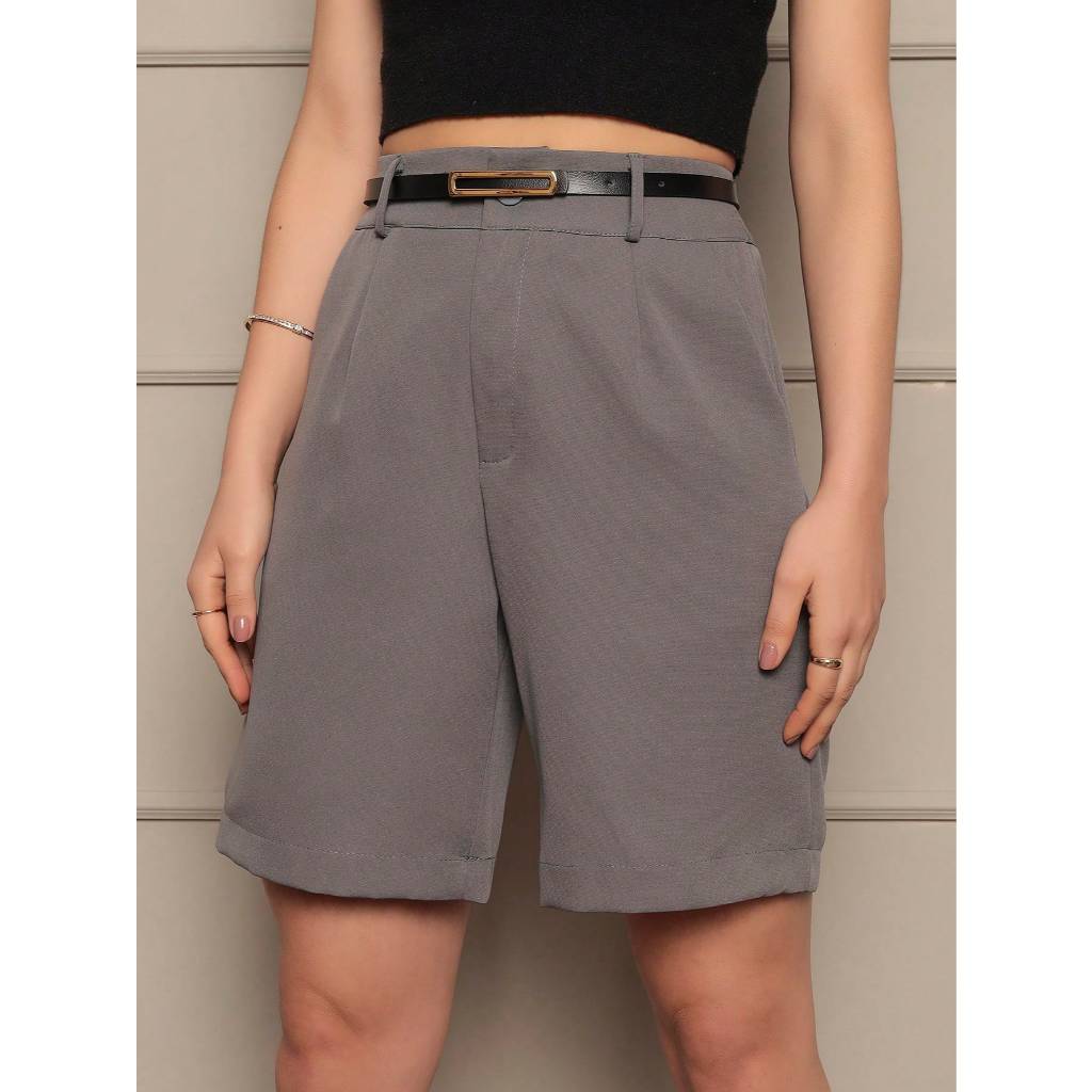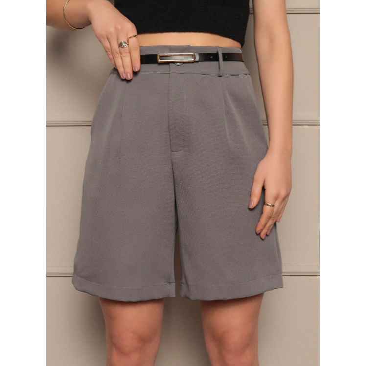 Bermuda alfaiataria social feminina com cinto e com bolso