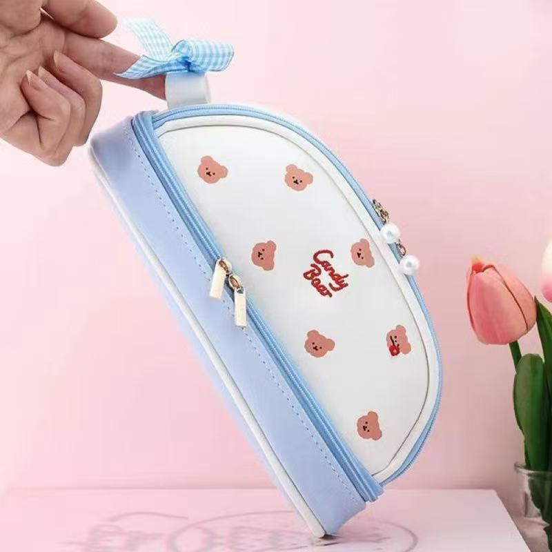 Estojo De Lápis PU Dupla Camada De Grande Capacidade -- Lina