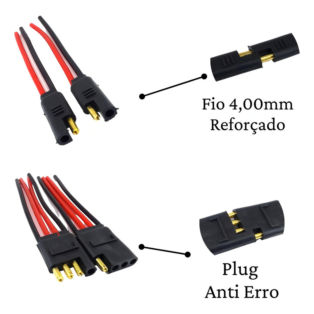 Conector 2 Vias + Conector 4 Vias Com Fio De 4,0mm