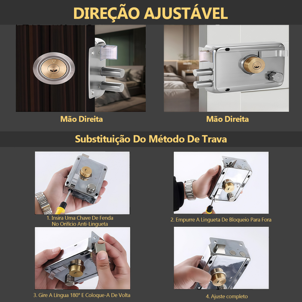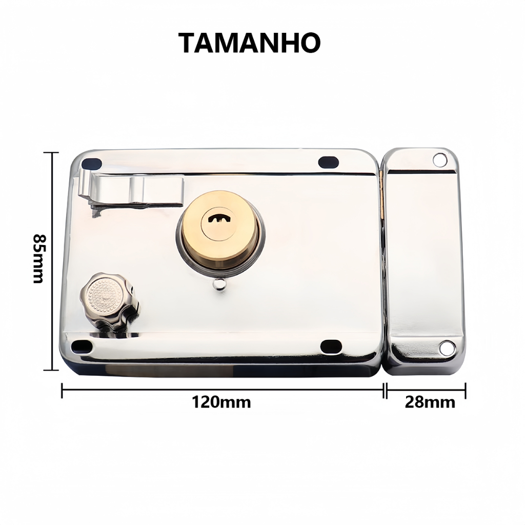 Fechadura Sobrepor cor Cromada para Portão e Porta Com Dupla e 05 Copia De Chaves