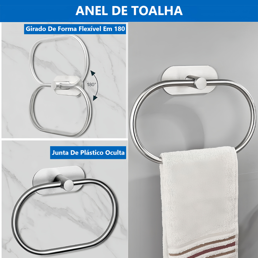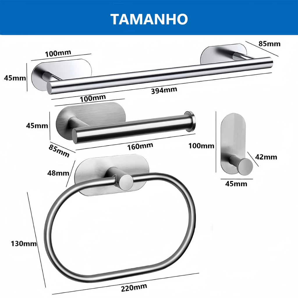 4 Peças Acessórios Aço inoxidável Banheiro Cabide Toalheiros Papeleira