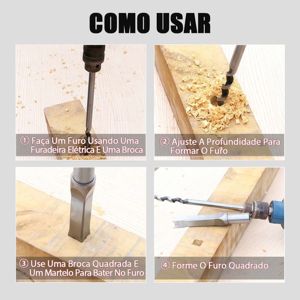4 Peças Brocas Furo Quadrado ferramentas de trabalhar madeira para abrir furos Furo De Aço