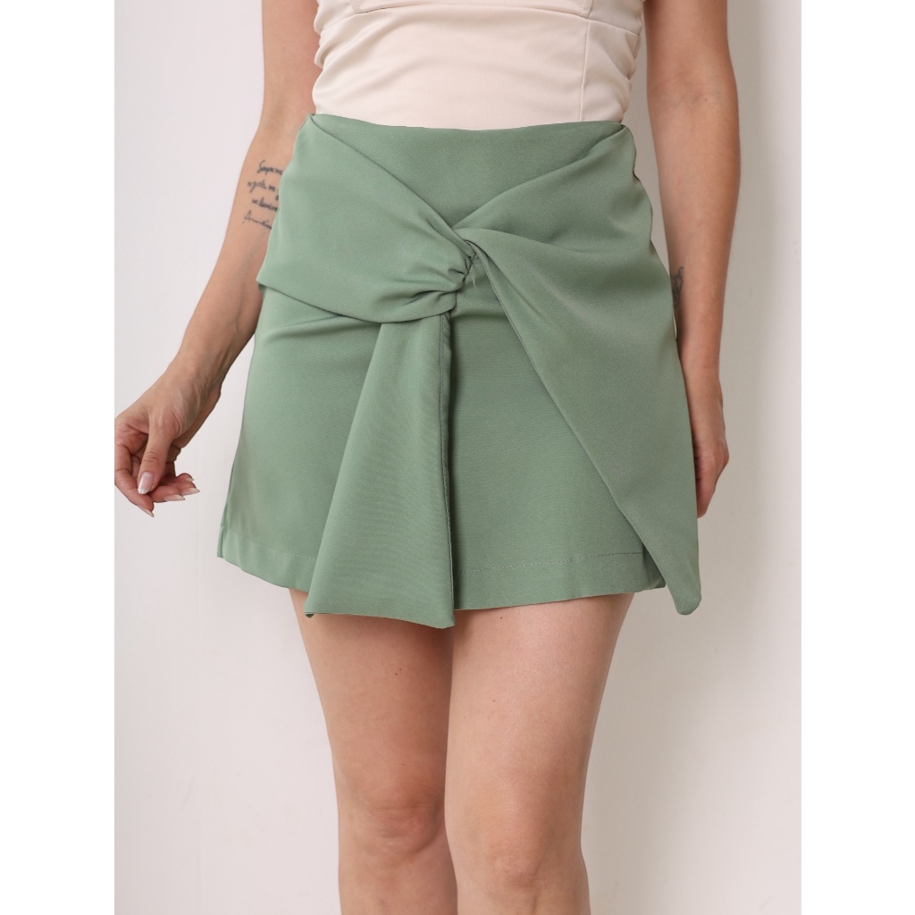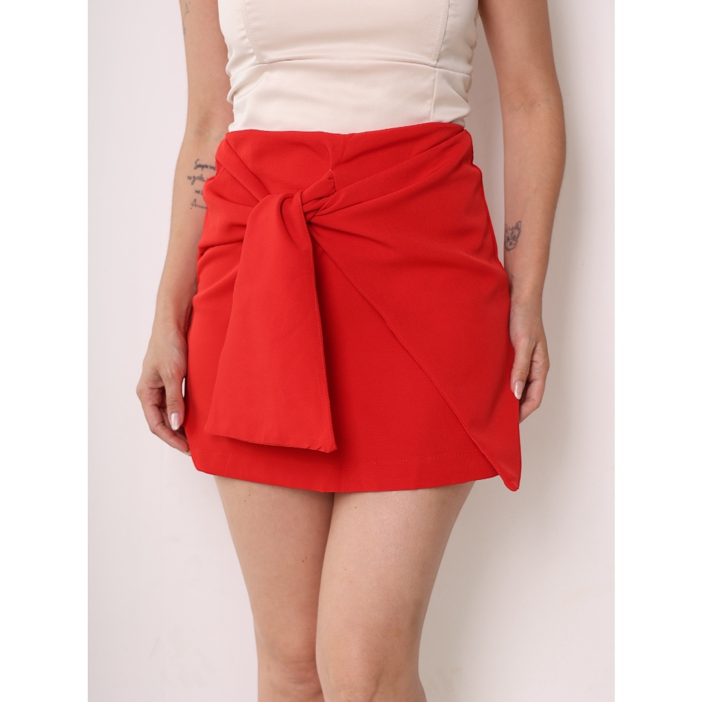 Saia curta cintura alta com zíper traseiro moda feminina desconto de preço baixo na moda