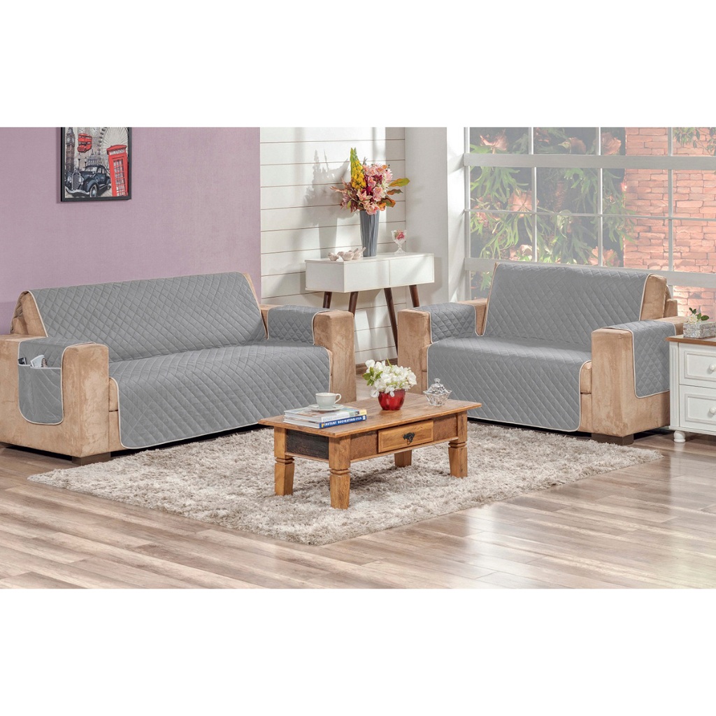 Kit Protetor Capa de Sofá Impermeável Dupla Face 2 e 3 Lugares c/ Bolsos Ótimo para Pets PROMOÇÃO