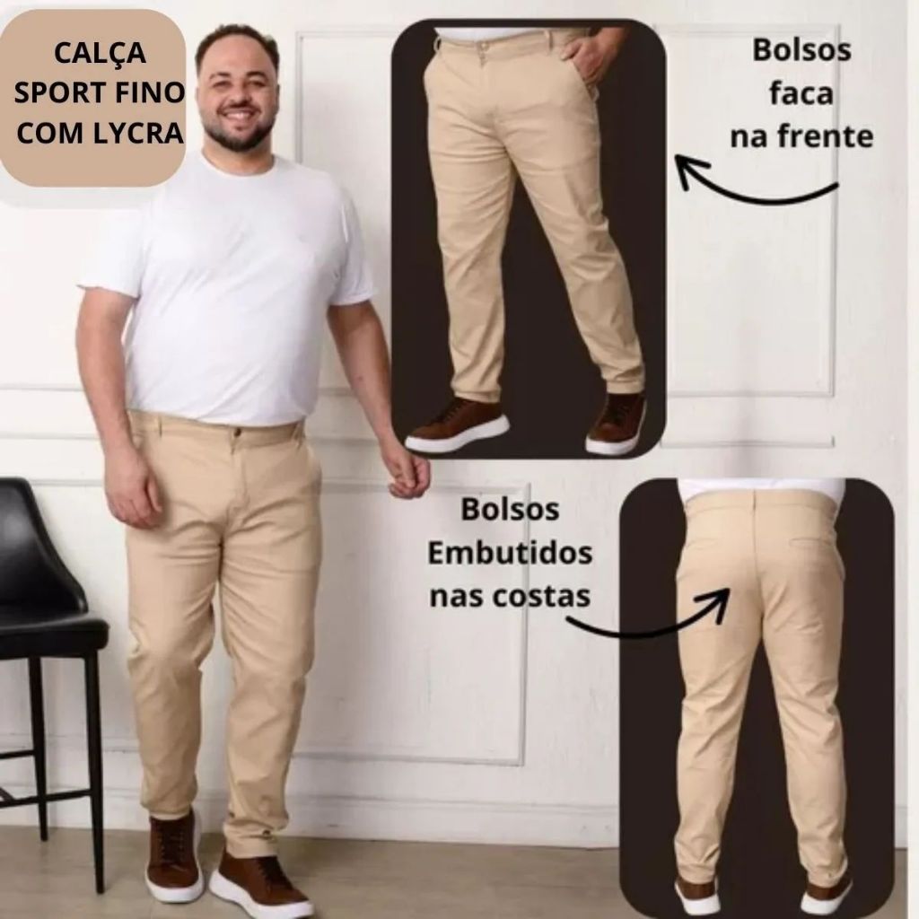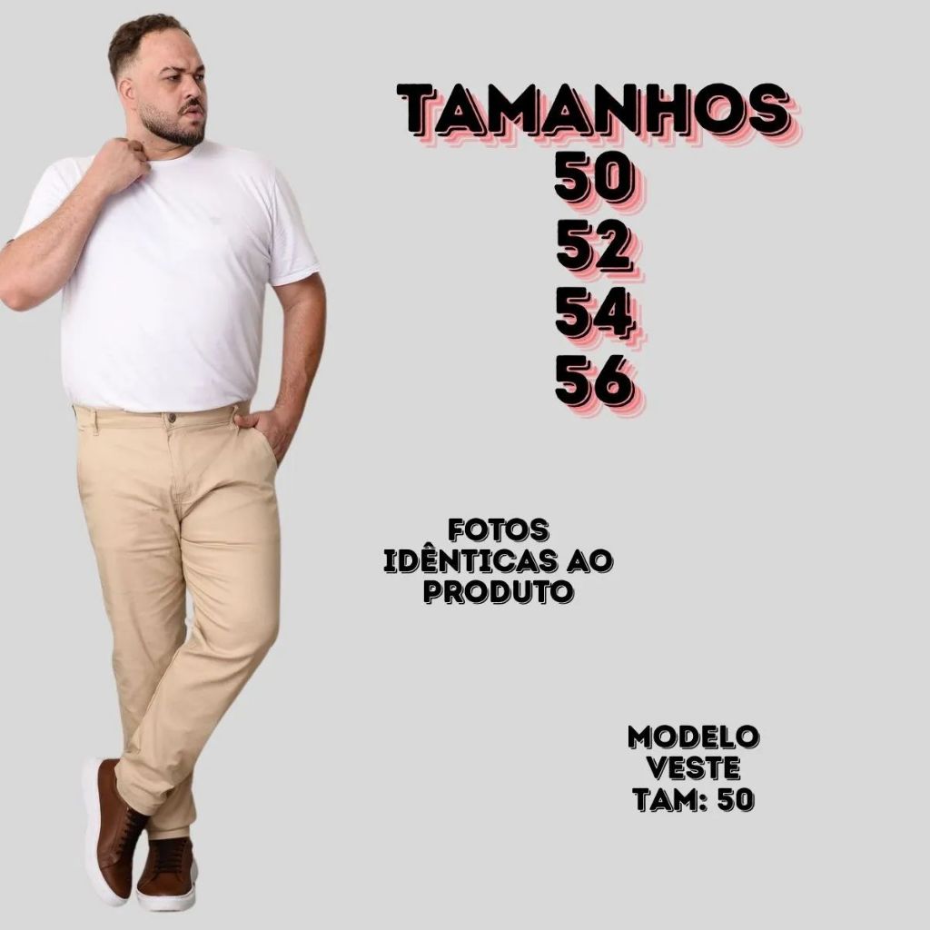 Calça Plus Size Masculina Alfaiataria Social Sarja com Lycra Tradicional tamanhos Especiais 50 52 54 56